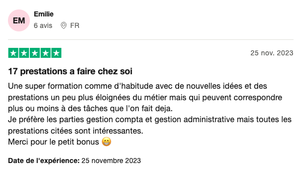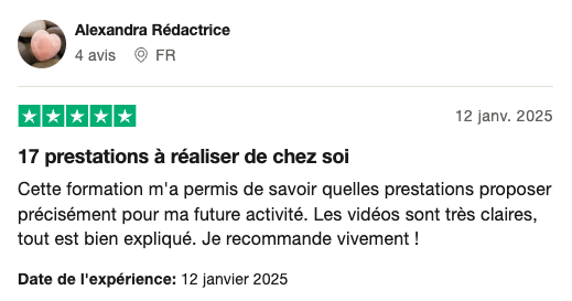Je vais te présenter en détail les 26 prestations en vidéo (avec 4 bonus à la fin de la formation).