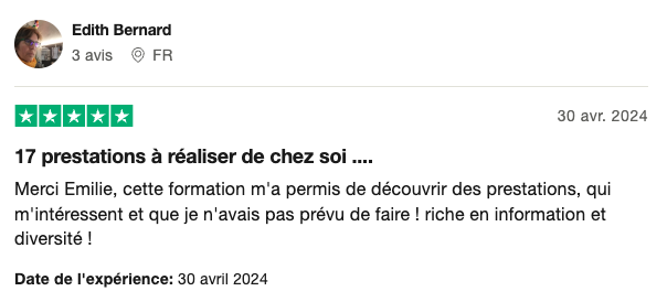 Tu recevras un tableau synthétique des 26 prestations abordées dans la formation,