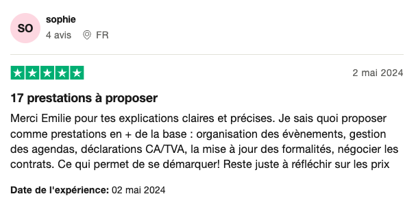 Et j’espère sincèrement qu’elle t’aidera à trouver la ou les prestations qu’il te manque pour réussir pleinement dans ton activité de secrétaire indépendante.